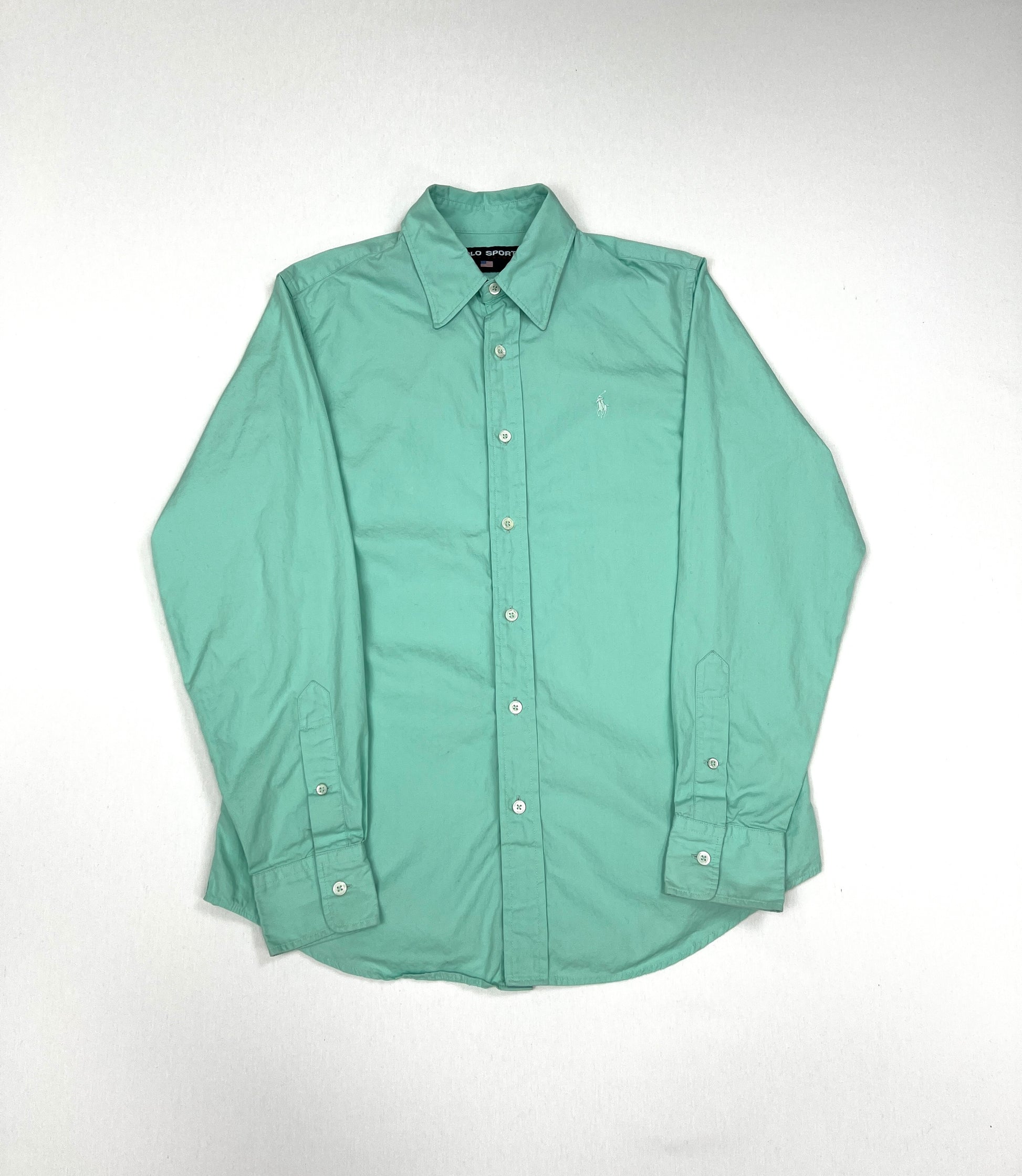 Camisa Ralph Lauren Sport de segunda mano en color verde agua, una prenda ligera y versátil con estilo casual y deportivo. Confeccionada en tejido de alta calidad, cómoda y resistente, perfecta para looks diarios o combinaciones más sofisticadas.
