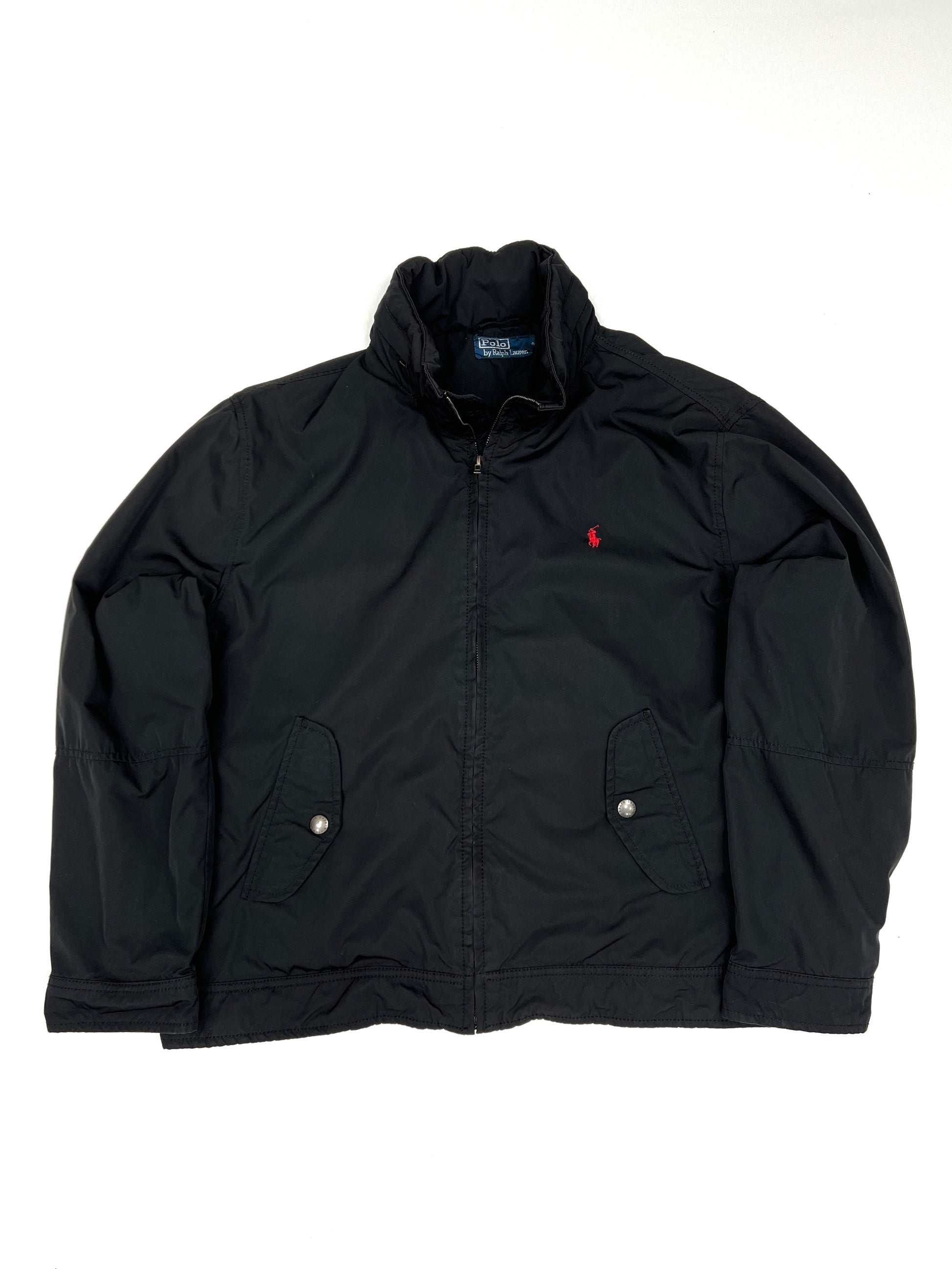 Chaqueta estilo Harrington Ralph Lauren de segunda mano en color negro, una prenda clásica y atemporal que combina elegancia y carácter. Su diseño limpio y estructurado la convierte en una opción perfecta tanto para looks casuales como más sofisticados.
