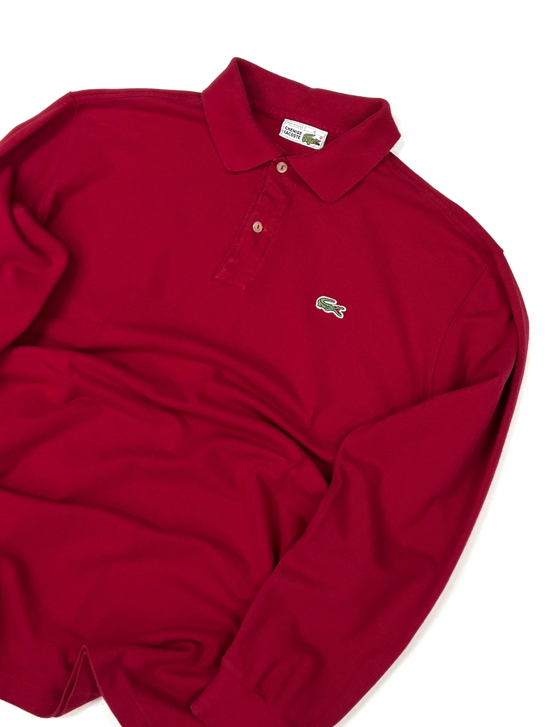 Polo Lacoste de segunda mano en color granate, una prenda clásica y atemporal que combina elegancia deportiva y estilo casual. Confeccionado en tejido cómodo y de calidad, ideal para looks diarios o para aportar un toque sofisticado a conjuntos informales.
