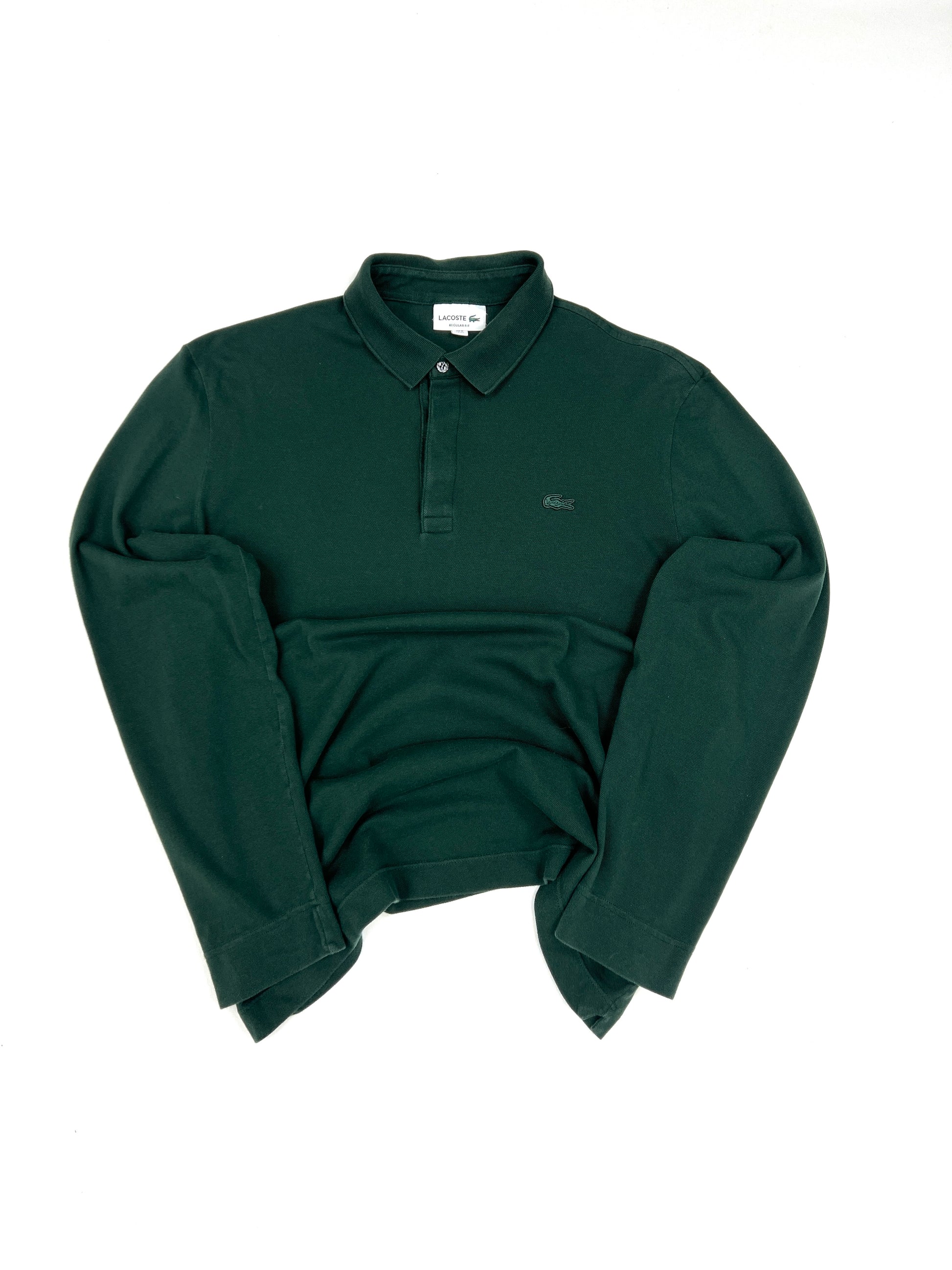 Polo Lacoste de segunda mano en color verde, una prenda clásica y atemporal que combina elegancia deportiva y diseño limpio. Confeccionado en tejido cómodo y de calidad, ideal para looks diarios o para aportar un toque sobrio a conjuntos informales.