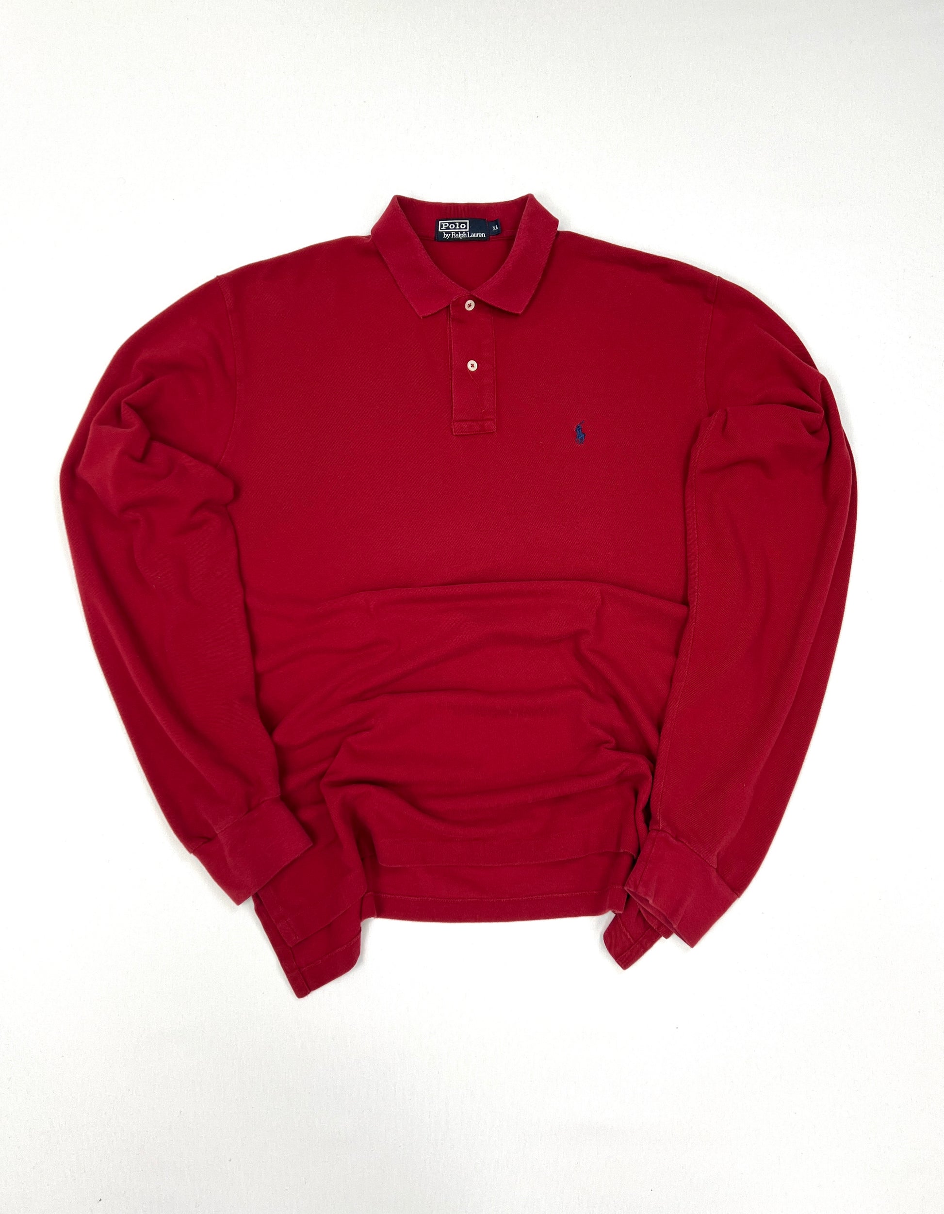 Polo Ralph Lauren de segunda mano en color rojo, una prenda icónica y atemporal que aporta un toque de color clásico a cualquier look. Confeccionado en tejido cómodo y transpirable, es ideal tanto para el día a día como para conjuntos más cuidados.